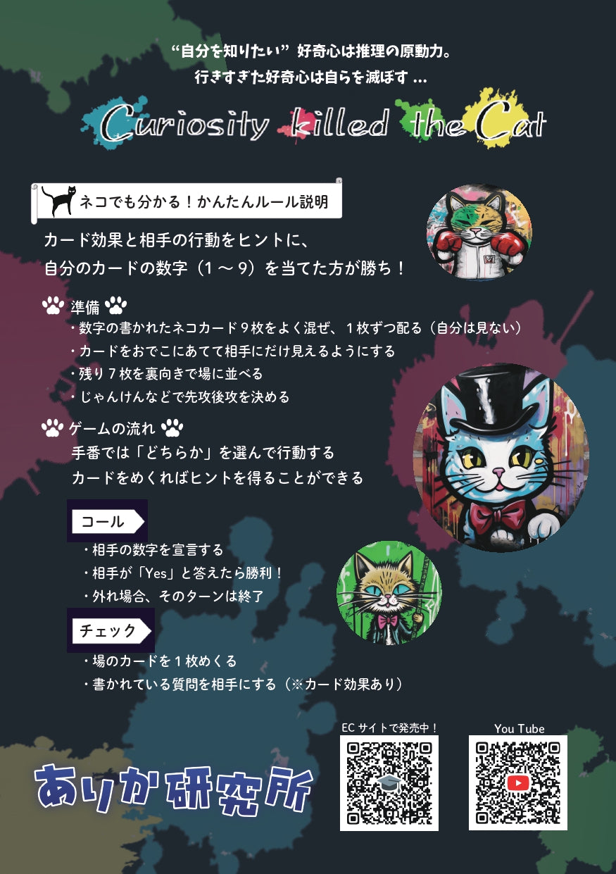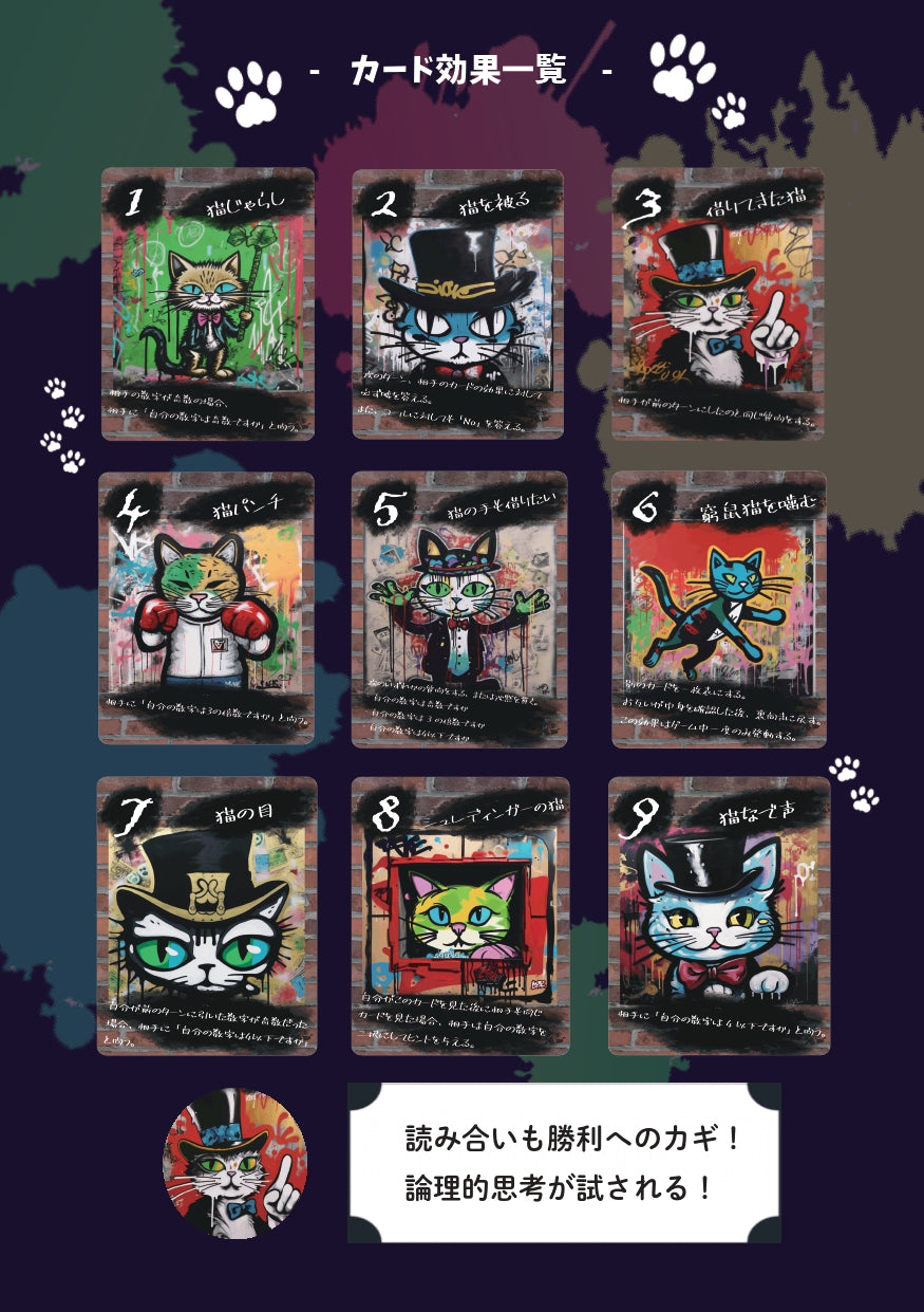 自分のカードを知らないまま、カードのヒントを使って、自分の数字を当てる推理バトルです。 シンプルなルールながら、毎回異なるゲーム展開になるため、繰り返し何度でもプレイしたくなるお手軽ゲームです。
